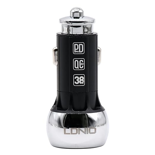 شاحن سيارة سريع Ldnio C1 PD+QC 3.0 مع كابل من النوع C إلى Lightning